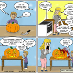 You’d be surprised how long it takes to intentionally leave white spaces while coloring… yeesh! In any case, it’s pumpkin carving night at Casa Adams! A night of eviscerating gourds and unlicensed plastic (pumpkin) surgery! Always a fun time…